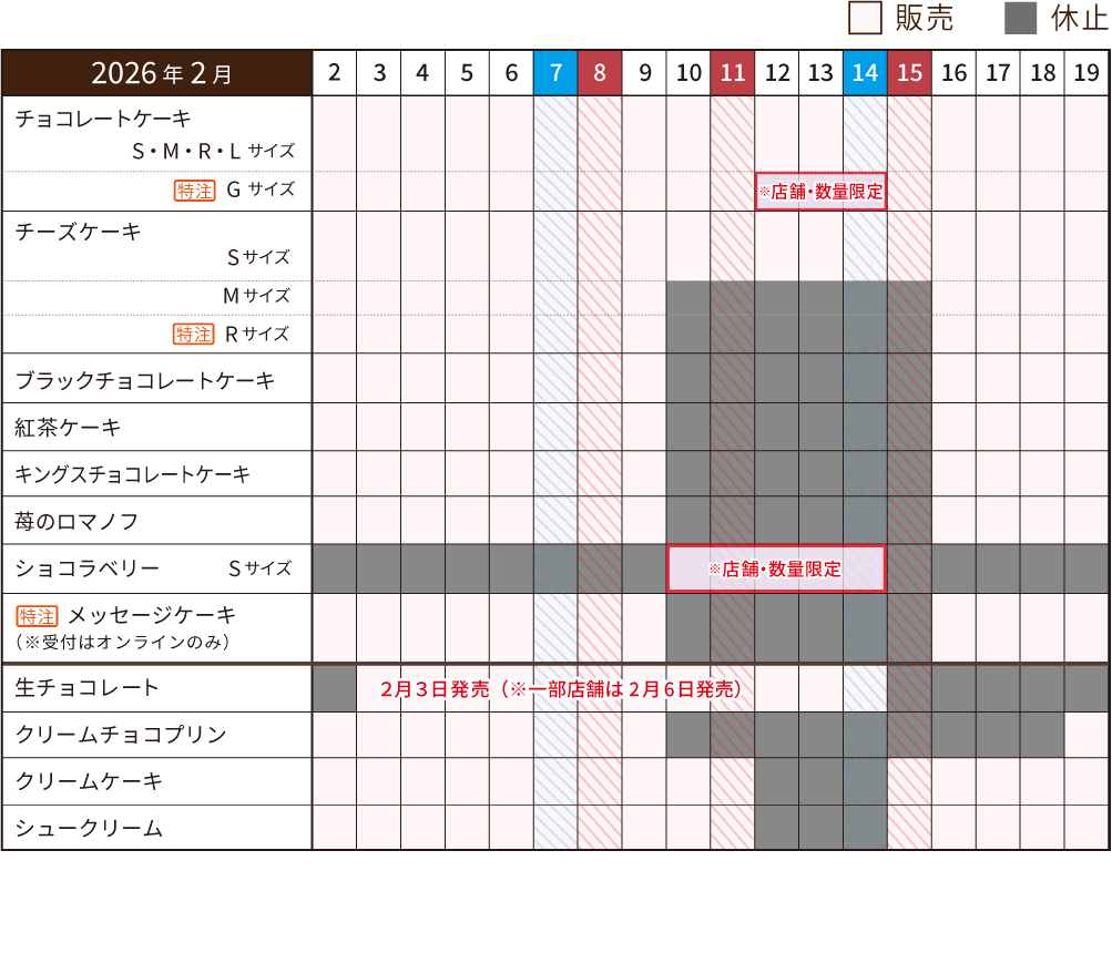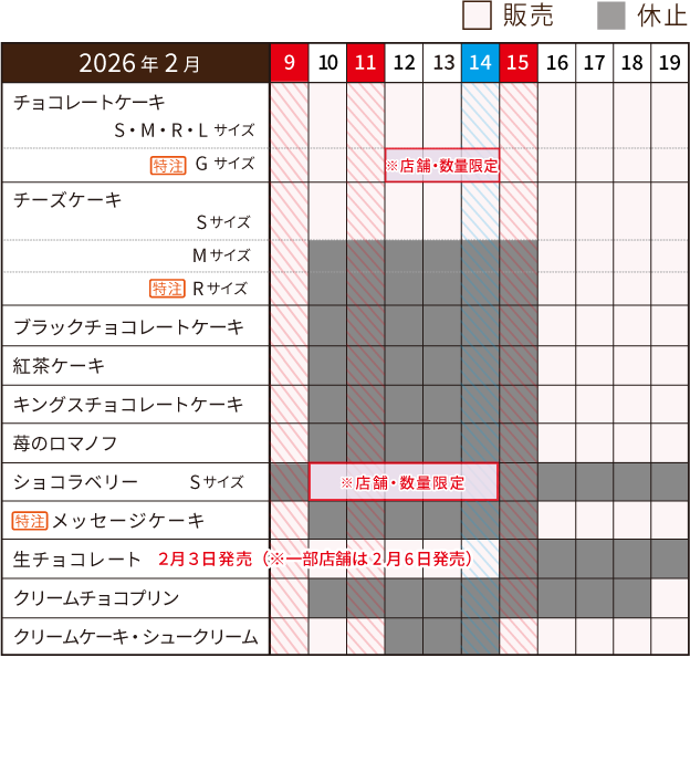 (※2月12~14日は、Gサイズは店舗限定での販売となります)
